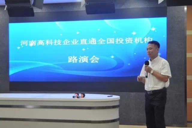2016年7月29日,由郑州高新区管委会证券办、高新区挂牌公司服务协会联合主办的第二期“河南高科技企业直通全国投资机构”路演会在高新区中原国家广告产业园内的河南路演中心圆满举行。