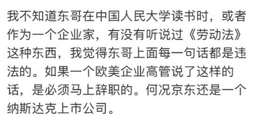 刘强东曾在接受央视采访时说过,如果一家公司靠克扣员工的五险一金,牺牲兄弟们60岁之后保命的钱,那是耻辱的钱。这家公司存在还有什么意义呢?