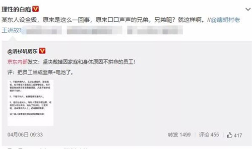 网友之所以这么大的反应,是因为此前2018年5月16日,刘强东曾公开表示,永远不会开除任何一个兄弟。而在2017年,刘强东更是慷慨的说道“公司不会不管兄弟,我绝对不允许一人重病穷三代的事发生在京东兄弟身上!”。