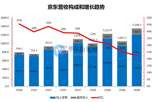 见智在点评京东2018年四季度财报时指出,季度营收增速为22%,增速进一步放缓。季度年度活跃买家数3.053亿(期间产生过至少一次购买行为的用户账户数),环比几乎零增长,成为国内主要电商平台中第一个停滞不前的平台,较天猫淘宝同季度环比3500万的净增用户数相差甚远,用户数的停滞不前成为未来京东增长的一大隐忧。