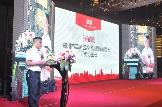 论坛伊始,郑州高新区管委会经发局副局长、证券办主任张崔威为本次会议作了精彩致辞。张崔威首先介绍了高新区的概况,他表示,郑州高新区长期致力于资本市场的发展,目前高新区主板上市企业十余家,在全省仅次于郑州和洛阳,排在第三位;新三板企业60余家,占河南省近四分之一,占郑州市60%。郑州高新区在全国国家级高新区综合排名中占到第四位。