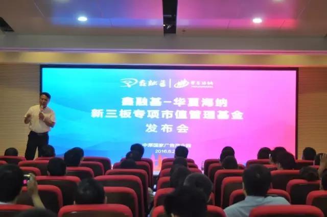 为了做好会员企业的服务,帮助企业拓宽融资渠道,2016年6月24日下午,挂牌协会联合协会会长单位——华夏海纳,和新三板第一家金控公司——鑫融基,在中原国家广告产业园举行了“鑫融基—华夏海纳新三板专项市值管理基金”发布会。